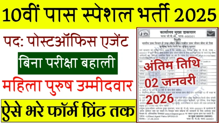 हेलो दोस्तों! अगर तुम 10वीं पास हो और सरकारी नौकरी की तलाश में हो, तो ये खबर तुम्हारे लिए बहुत खास है। इंडिया पोस्ट ने Post Office Agent Bharti 2025 के लिए नई भर्ती निकाली है। ये भारतीय डाक विभाग में नौकरी पाने का सुनहरा मौका है। इस लेख में हम Post Office Agent Vacancy … Read more